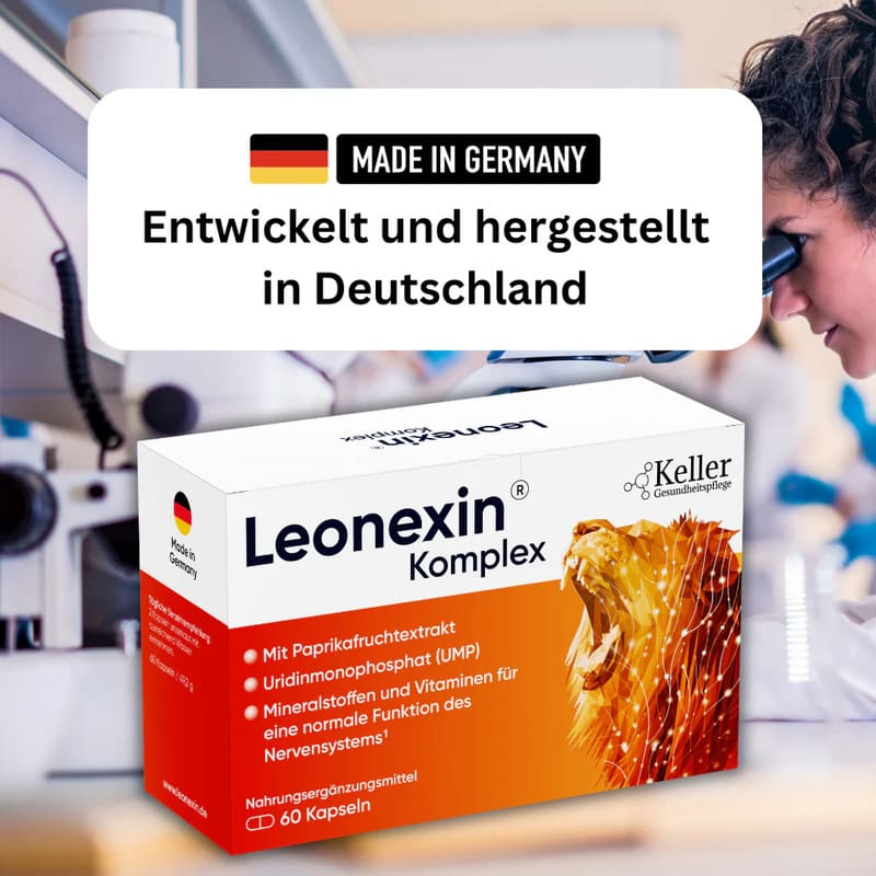 Drei Gründe: (1) Weltweit einziger Capsaicin-Aktivator zum Einnehmen – Forschung & Entwicklung sind aufwändig. (2) Deutsche Pharmaqualität (ISO 13485, PZN 19400653), BIO-Qualität wo möglich, laufende Kontrollen. (3) Therapeutische Dosen statt Unterdosierung. Ein Vergleich: Drogerie-B-Vitamine €17/Monat, Leonexin® €33,30/Monat. Für €1,11 pro Tag – deutlich weniger als eine Tasse Kaffee – erhalten Sie echte Nervenregeneration