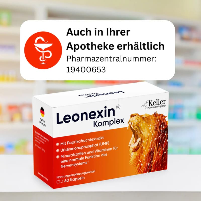 Leonexin® arbeitet von innen über die Blutbahn und erreicht alle betroffenen Nerven im ganzen Körper gleichzeitig – in Füßen, Händen und Beinen. Zusätzlich kombiniert es Capsaicin mit 8 Regenerations-Wirkstoffen (UMP, bioaktive B-Vitamine). So werden nicht nur Symptome gelindert, sondern die Ursache behandelt – ohne Hautreizungen.
