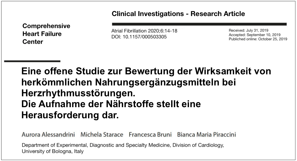 Herr Dr. Lamprecht erklärte mir: “Laut den neusten Studien der Universität Bologna: Aufgrund der mangelden Leistungsfähigkeit des Magen-Darm-Trakts kann nicht jede Nahrungsergänzung helfen, weil die alleine nicht ausreicht, wenn die Nährstoffe nicht im Herzen ankommen.”