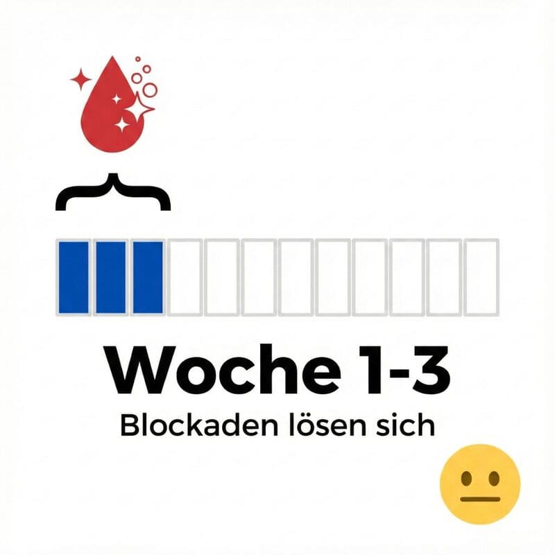 - Woche 1–3: Noch keine Veränderung (Blockaden lösen sich)