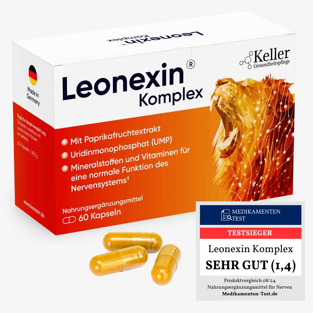 Leonexin Komplex ist eine speziell entwickelte Formel, die auf einer innovativen Kombination aus natürlichen Wirkstoffen basiert, um die Regeneration der Nerven zu fördern und Nervenschmerzen zu lindern. Die einzigartige Zusammensetzung enthält unter anderem Paprika-Extrakt, UMP, Kupfer, Vitamin B12 sowie essenzielle Mineralstoffe wie Zink und Folsäure, die gezielt zur Verbesserung der Nervenfunktion beitragen.