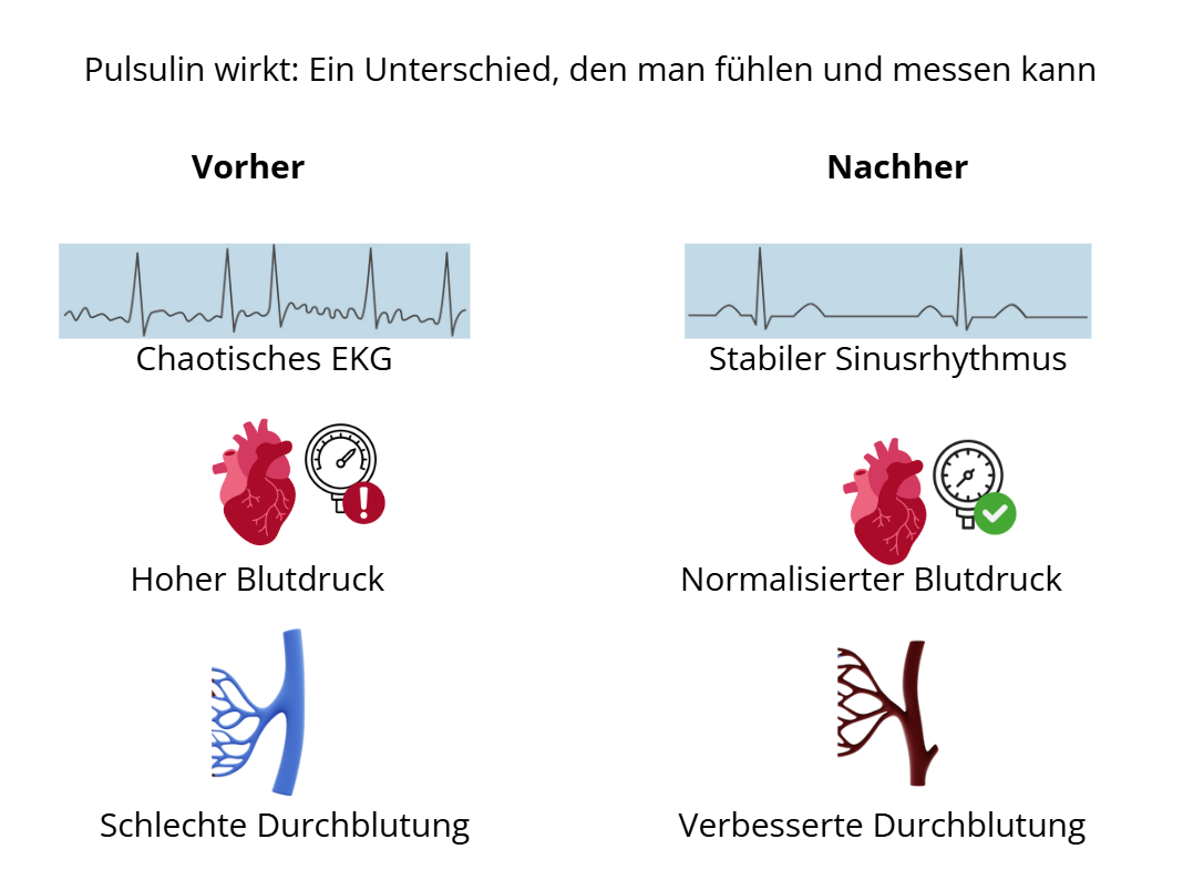 Pulsulin stabilisiert kurzfristig den Herzrhythmus und schützt langfristig das Herz-Kreislauf-System vor Schäden.